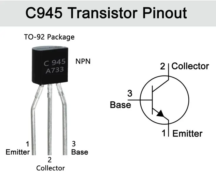 Correctly identifying the pinout of a transistor is essential for circuit integration. The C945 transistor, typically housed in a TO-92 package, has the following pinout when viewed from the front (flat side facing you):
