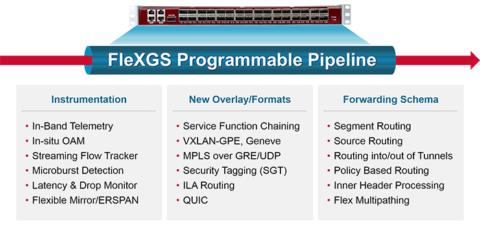 • Advanced Programmability: Incorporates the FleXGS™ packet processing architecture, allowing for customizable protocol parsing, processing, and editing.